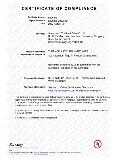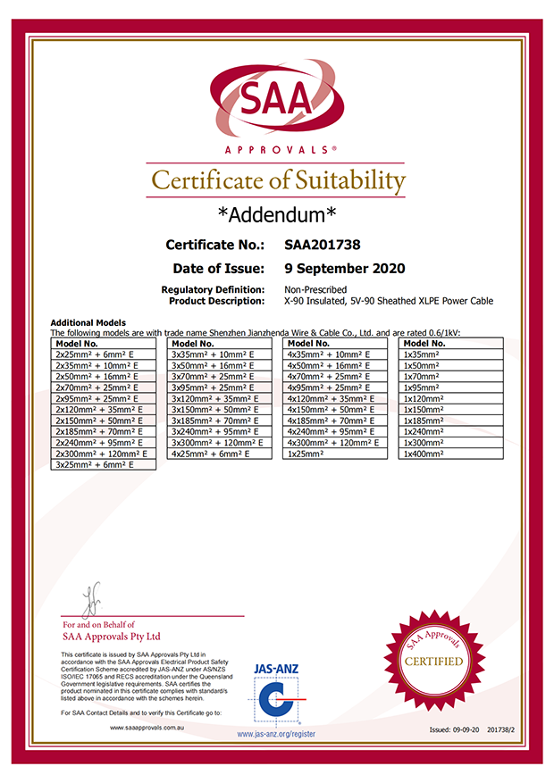 深圳建圳達(dá)電線電纜有限公司,成立于2000年,是一家電線電纜制造商,我們通過了世界各地不同市場的多數(shù)認(rèn)證,如:CCC、RoHS、CB、SAA、TUV、VDE、PSE、BPS、UL、CSA。我們根據(jù)定制產(chǎn)品不斷更新新的認(rèn)證。經(jīng)過數(shù)十年的發(fā)展,我們與來自世界各地的客戶建立了長期的合作關(guān)系。我們曾經(jīng)是菲律賓機場,,柬埔寨的電力站,美國的醫(yī)院,工廠,埃塞俄比亞的水電站項目。我們是一家值得信賴的電線供應(yīng)商。